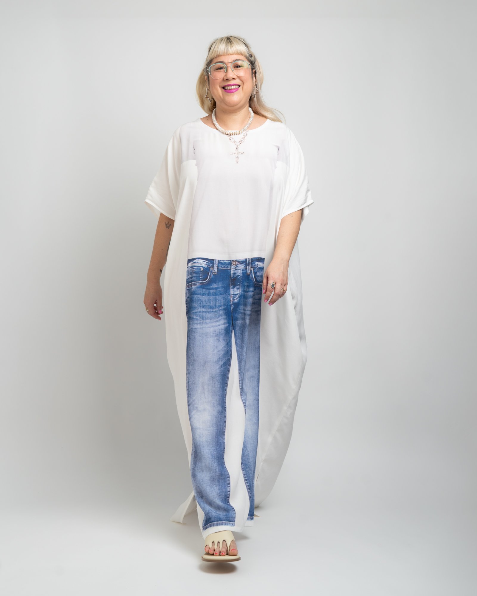 • Trompe l’oeil jeans + t-shirt print