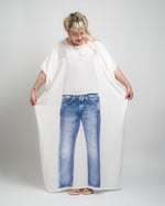 The Jeans + Tee Caftan is a wearable illusion. A fashion trick for when you want to look like a jeans-and-a-tee person… without actually being one. For the days when you want to serve outfit but feel like you’re on holiday. Casual Fridays, reimagined.